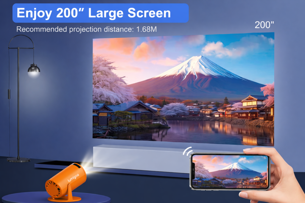 Enjoy a cinematic display with up to 200 inches of vibrant, detailed projection—even from just 1.68 meters away. Whether you’re in a living room, bedroom, or small office, this compact projector transforms any wall into a massive screen.