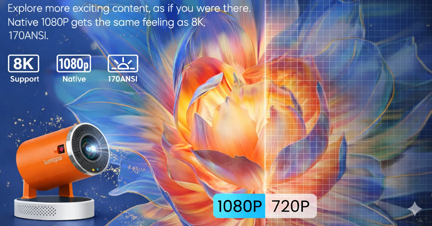 Compared to standard 720P projectors, Lumigoa’s display offers significantly enhanced sharpness and color accuracy, making every scene feel more real and engaging.